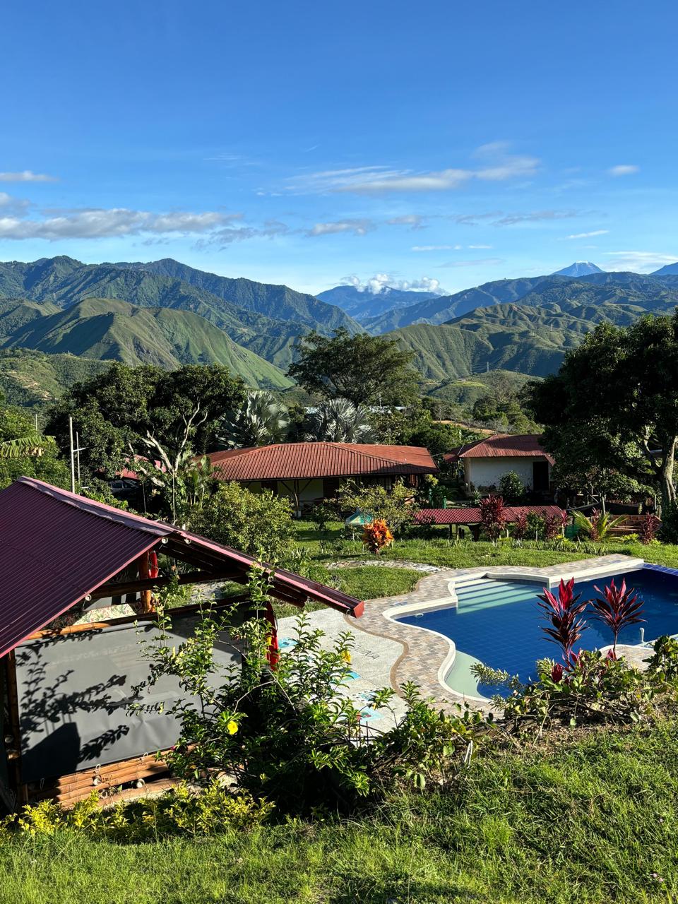 Piscina con vista al infinito, montañas del Tolima, jardines y frutales. Cada rincón es una postal natural.